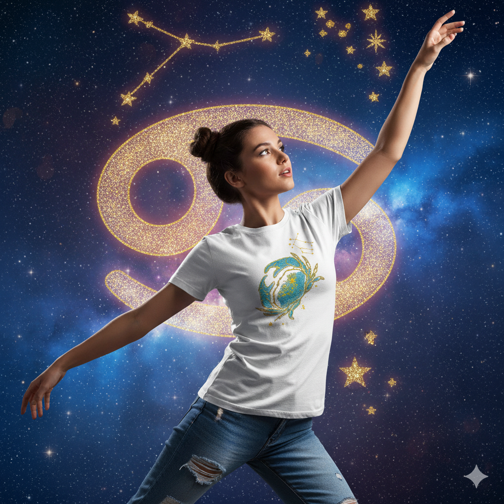 Affichez fièrement votre signe astrologique avec ce tee-shirt Zodiaque Cancer ♋︎, soigneusement brodé dans notre atelier en France. Confectionné avec un fil métallique doré, cette pièce unique allie élégance et originalité pour sublimer vos origines stellaires. Un choix raffiné pour un style distinctif et personnel.